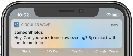 Managers can send individual or broadcasted messages to staff and staff groups.