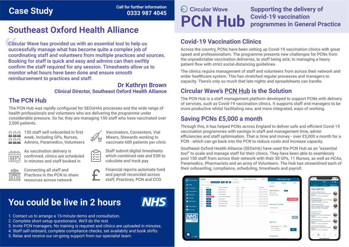 Staff are being pooled from across general practice, PCNs, GP Federations and beyond to contribute to the Covid-19 vax programme. This unprecedented level of collaboration is amazing but does need managing. The PCN Hub gets staff from all across the network onto the same system, irrespective of employer, role or contract type so they can be managed (and paid) effectively.
